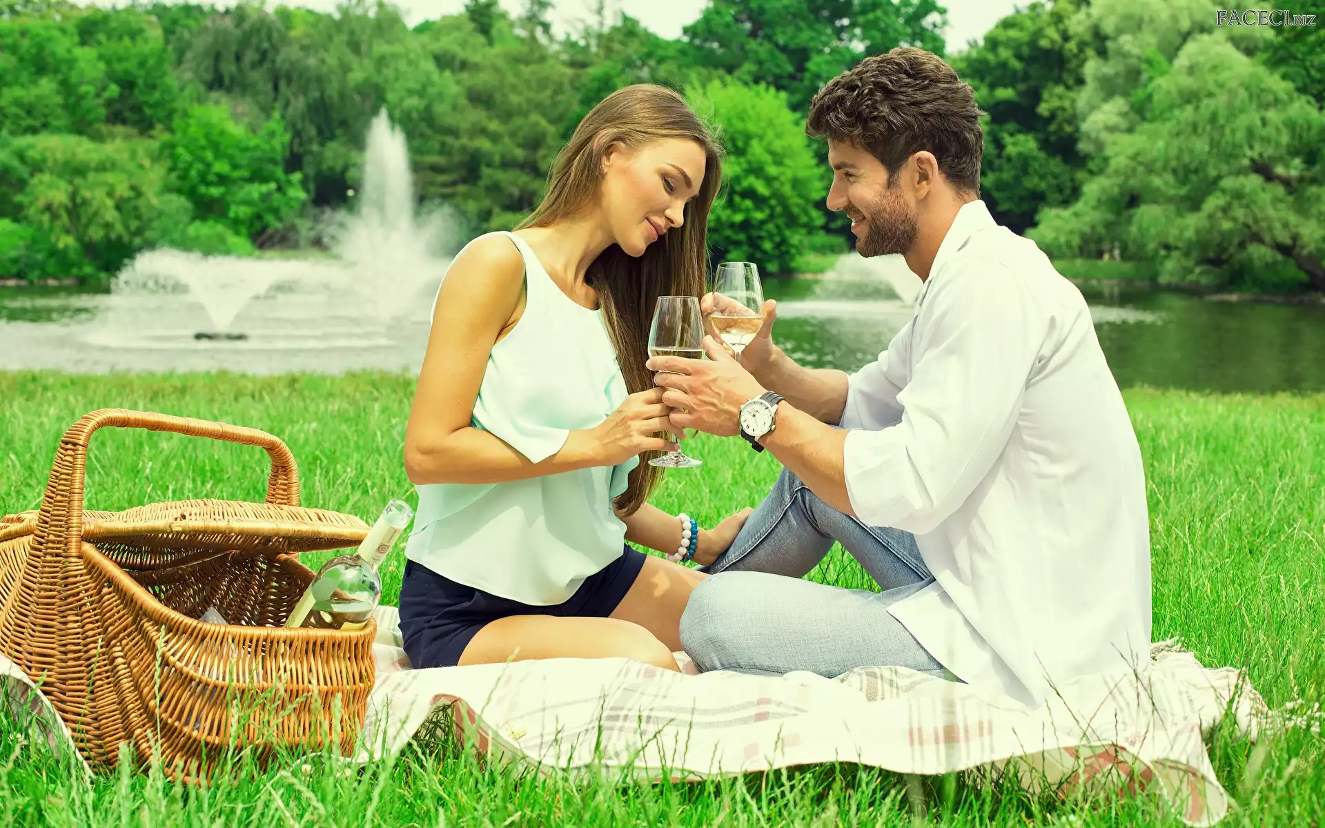 Koszyk, Piknik, Kobieta, Wino, Kieliszki, Mężczyzna, Koszyk - faceci.biz